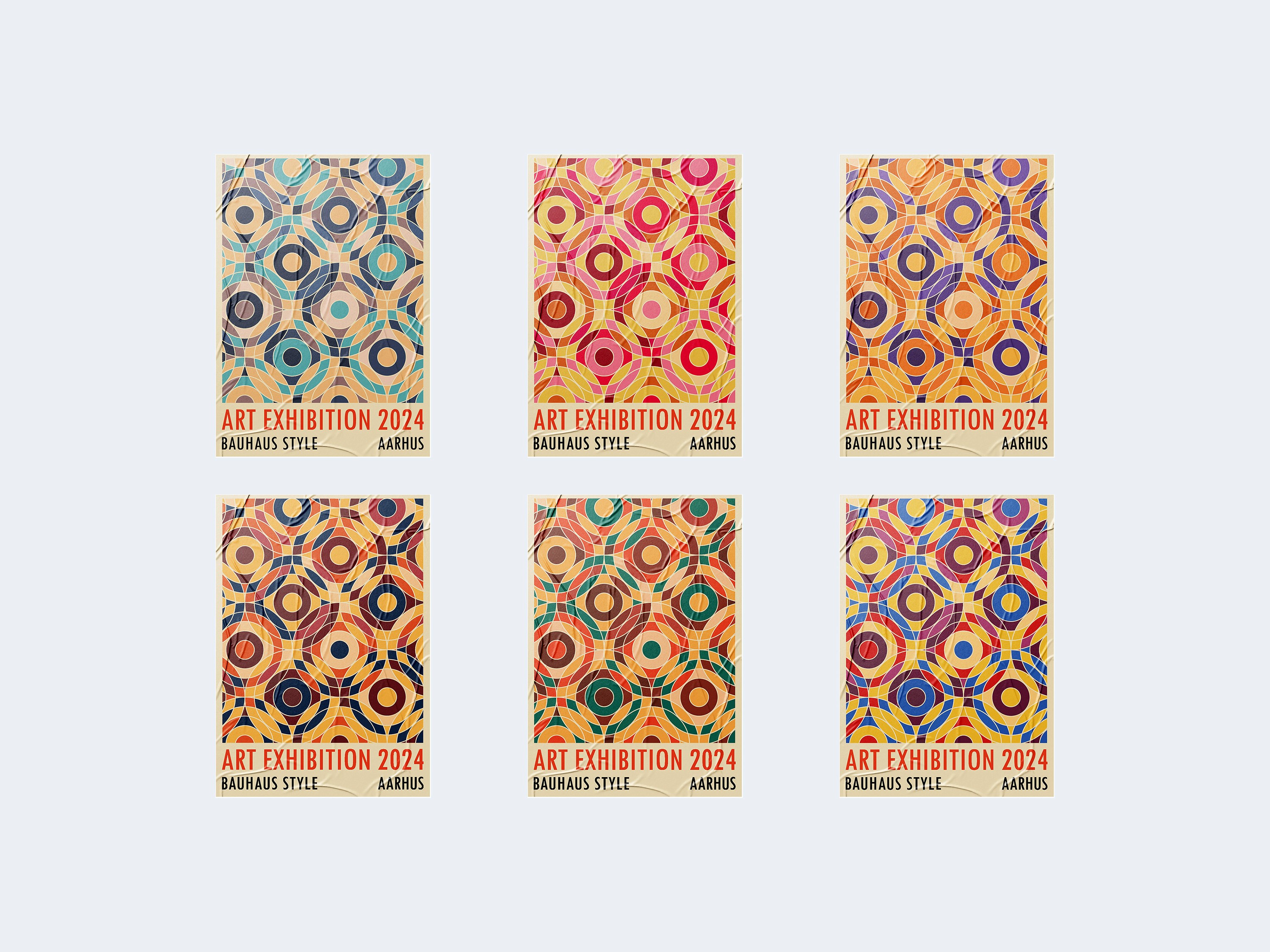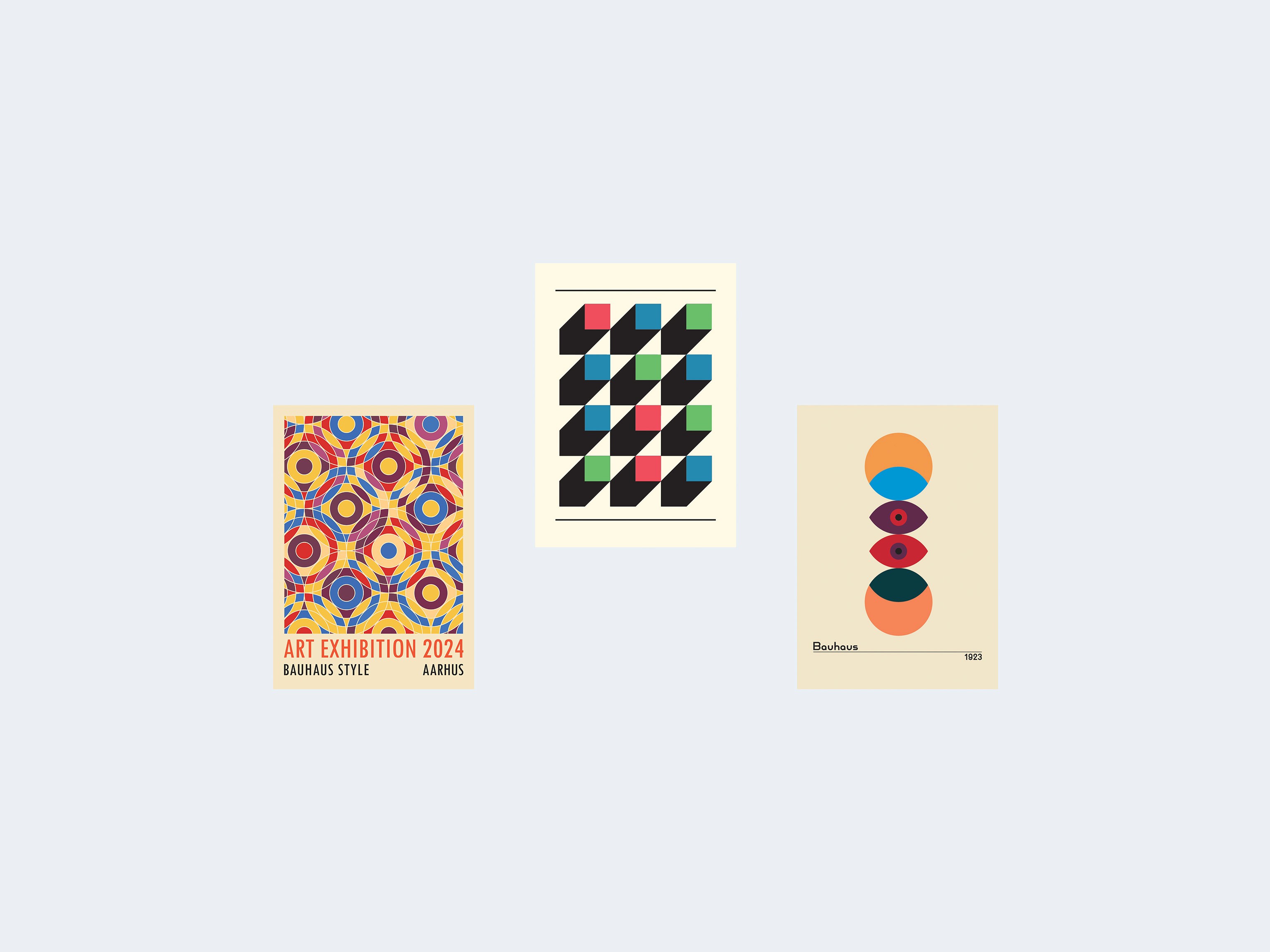 En serie af plakater inspireret af Bauhaus-bevægelsens ikoniske designprincipper. Projektet udforsker geometriske former, primærfarver og typografisk komposition i en moderne fortolkning af den klassiske stil.