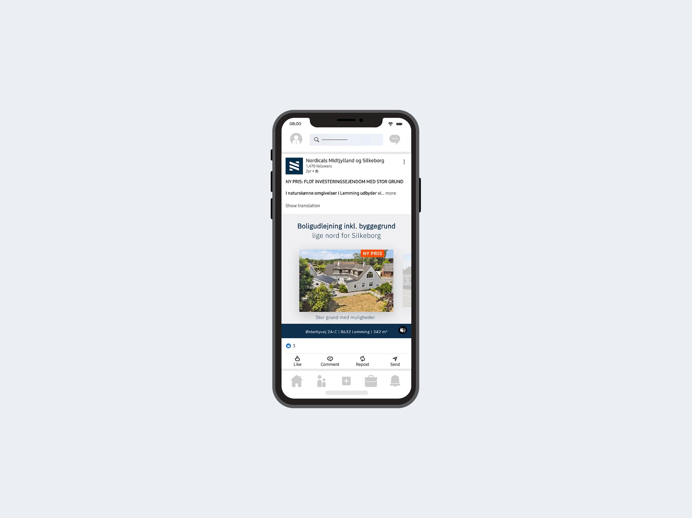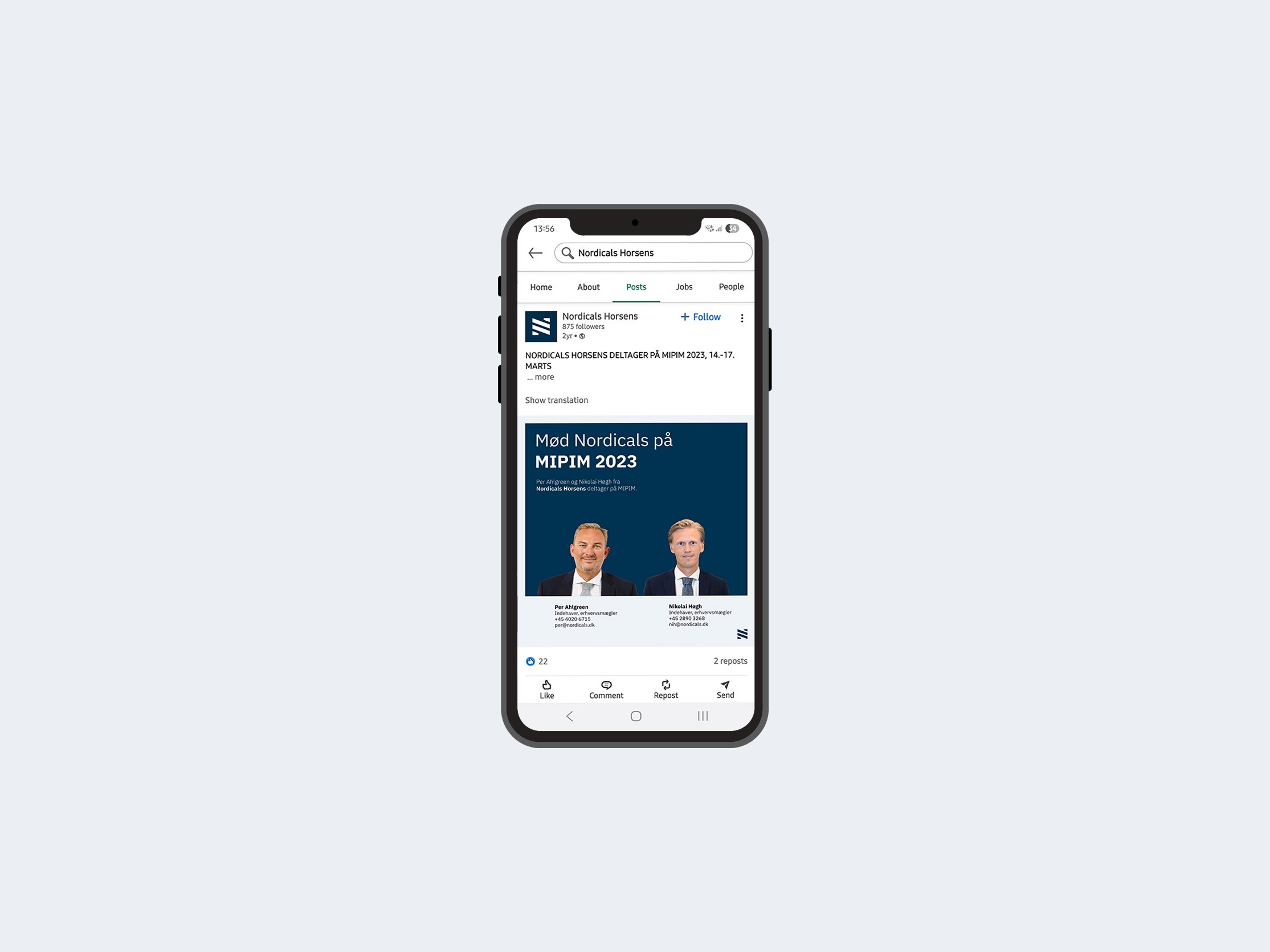 B2B-markedsføring på LinkedIn og Facebook for Nordicals A/S. Jeg stod for at skrive og producere alt indhold til virksomhedens sociale medier, fra opslag til grafik, med fokus på at nå investorer, erhvervslejere og beslutningstagere i ejendomsbranchen.